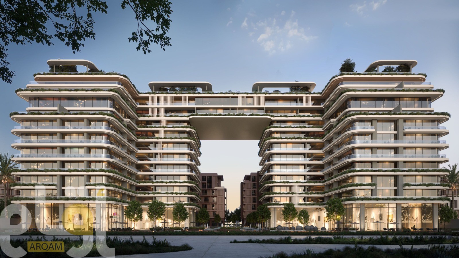 يتميّز البرج الأيقوني The Iconic Tower – بتصميم معماري فريد على شكل حرف U، ويتكوّن من برجين يضمان نحو 250 وحدة، متصلين بجسر علوي مميز يُشكّل بوابة معمارية بين المدينة والوادي الرئيسي في قلب مدينة السلطان هيثم.