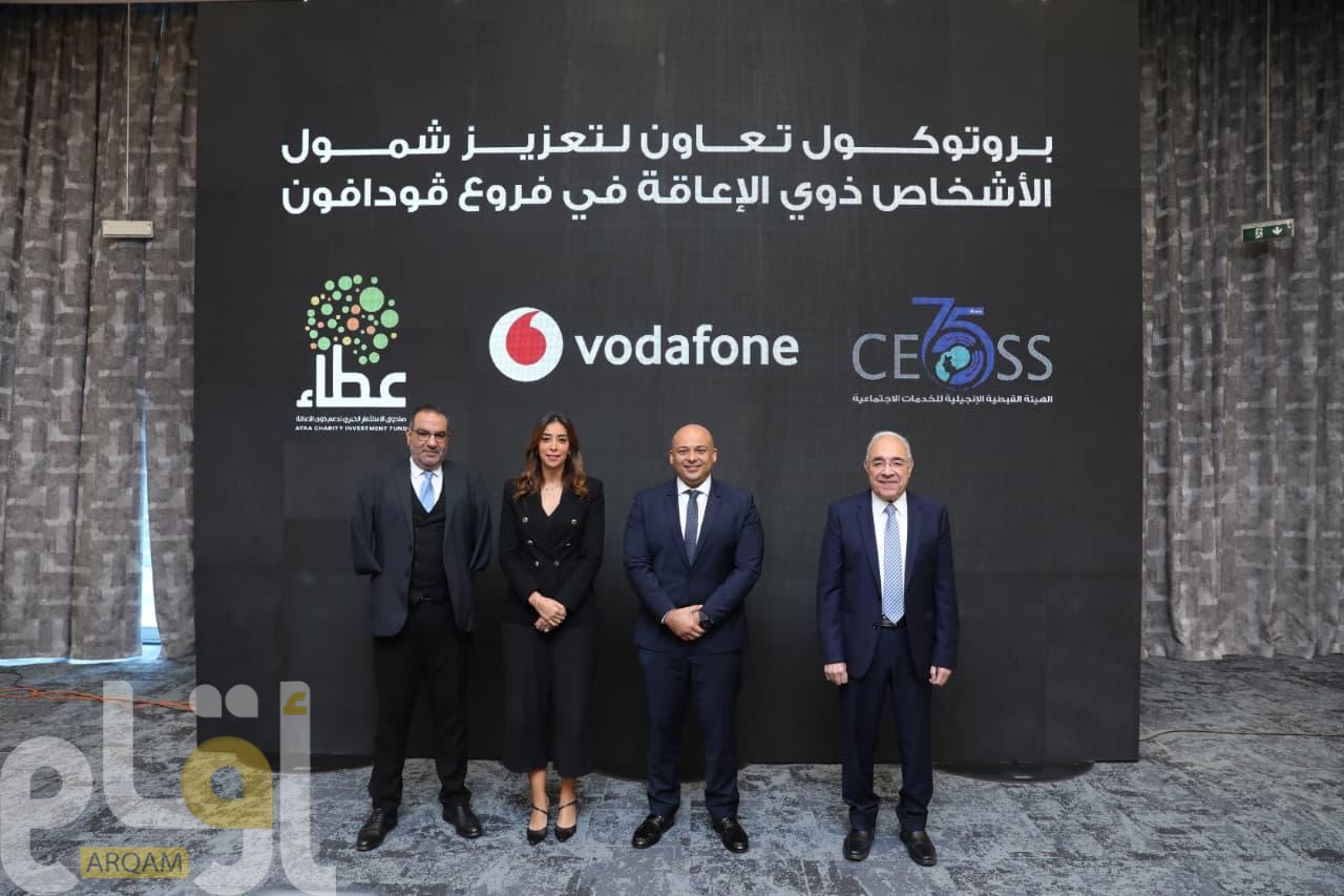 بروتوكول تعاون مشترك بين فودافون مصر، وصندوق الاستثمار الخيري لدعم ذوي الإعاقة “عطاء”، ومؤسسة (CEOSS) بهدف تعزيز الشمول، وتقديم تجربة أكثر إتاحة ودمجًا للأشخاص ذوي الإعاقة داخل فروع ڤودافون مصر، وذلك وفقًا لمعايير وكود الإتاحة.